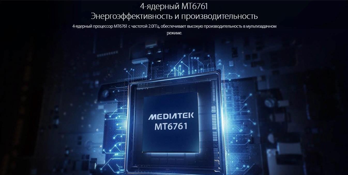 - Четырехядерный процессор MediaTek Helio A22 MT6761 с частотой 2.0 Ггц;