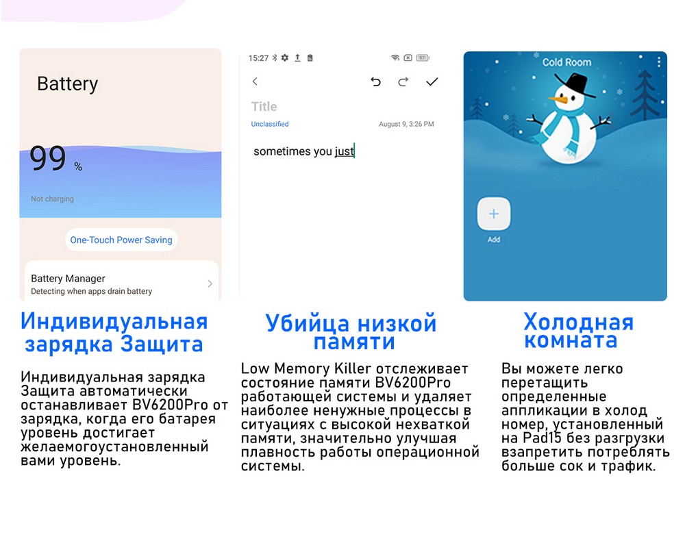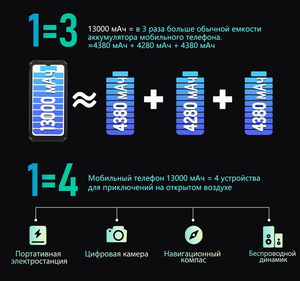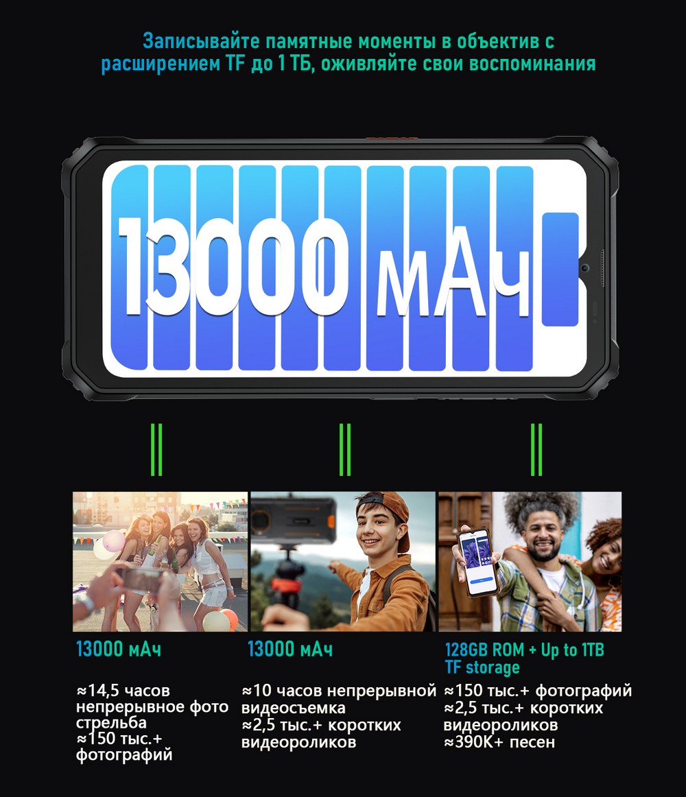 | Дополнительно | Мощный аккумулятор |