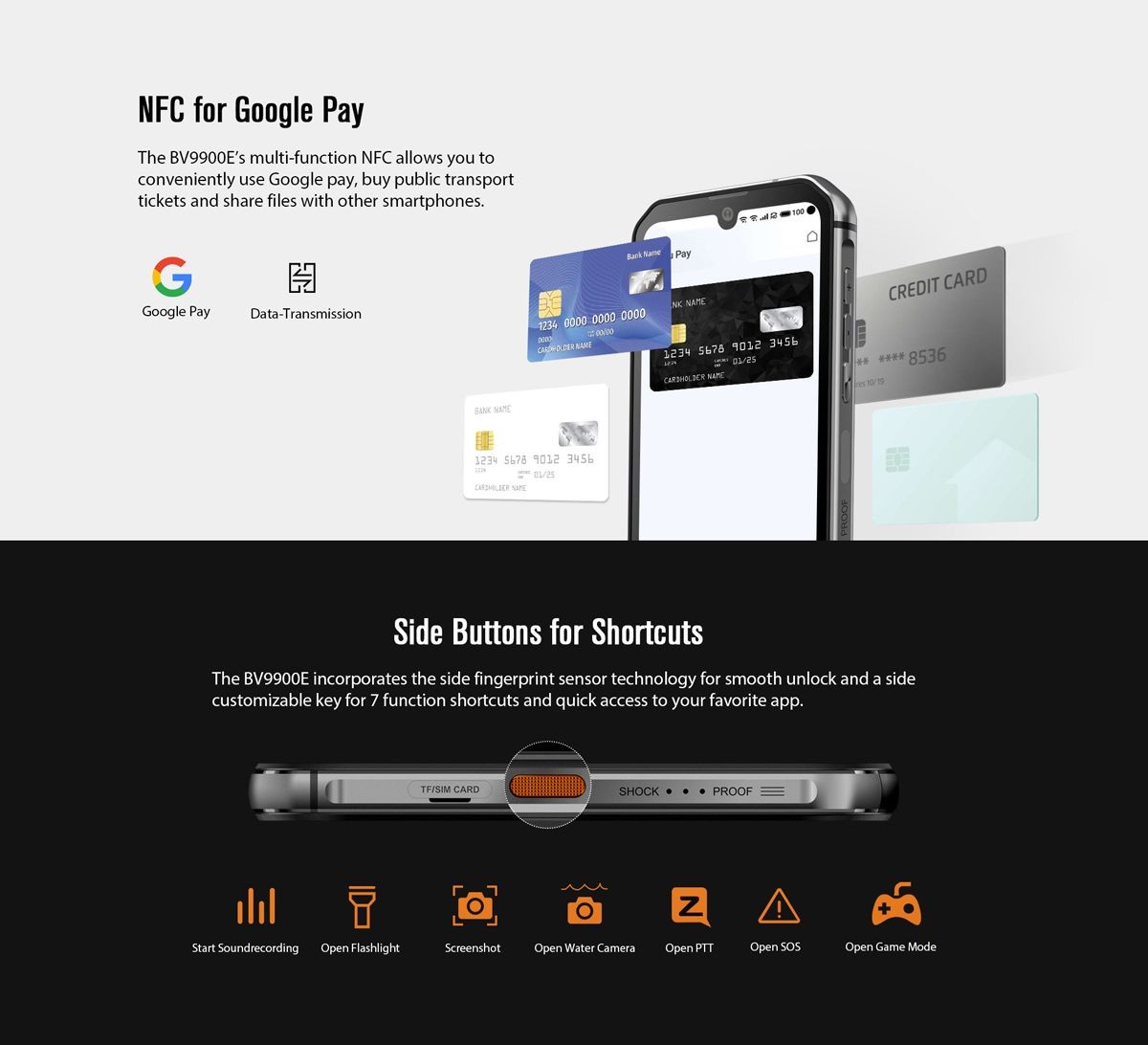 - Водоустойчивый сканер отпечатка пальца, позволяющий разблокировать телефон за 0,1 секунды даже при мокром пальце;
