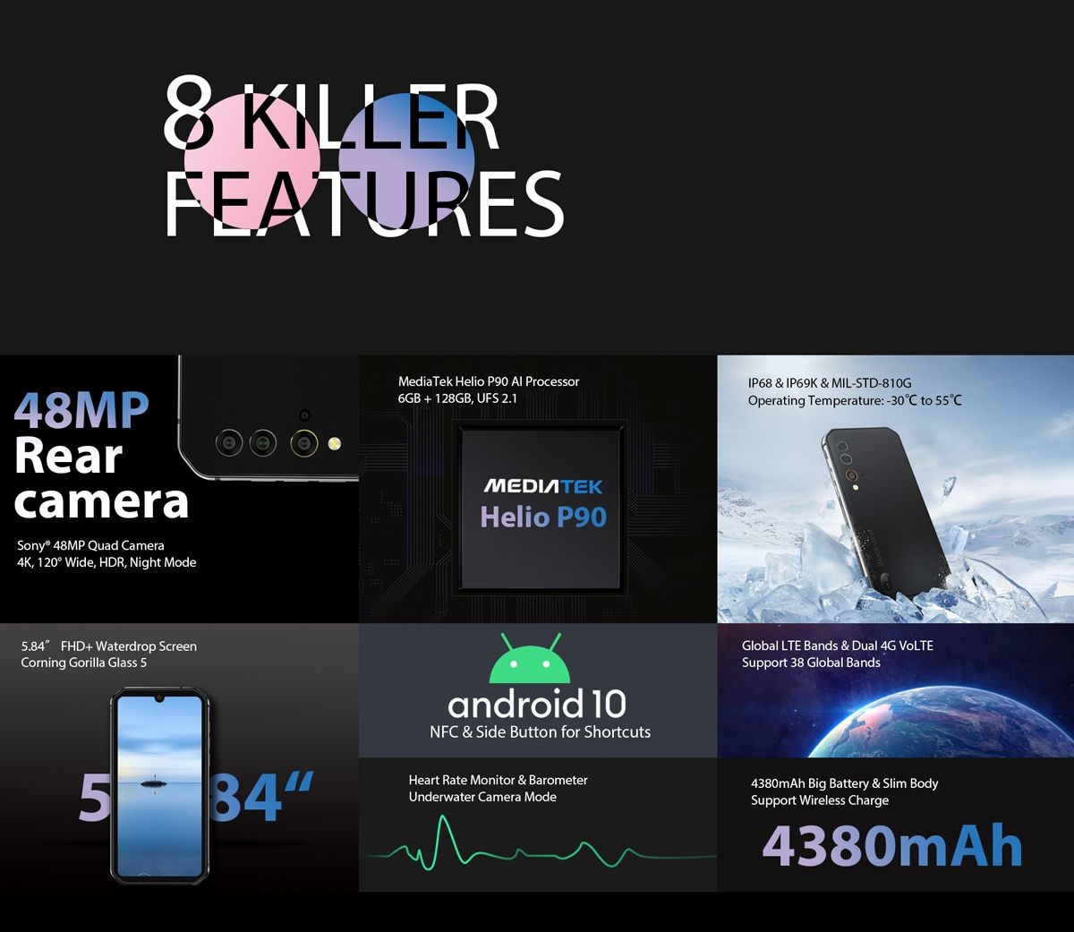 - 8-ядерный процессор MediaTek Helio P90 с искусственным интеллектом;