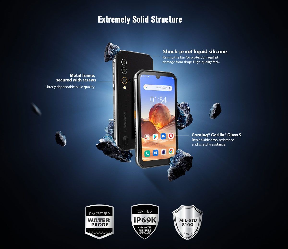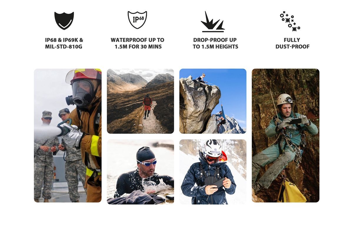 - Максимальный класс защиты IP68/IP69K и американский военный сертификат MIL-STD-810G;