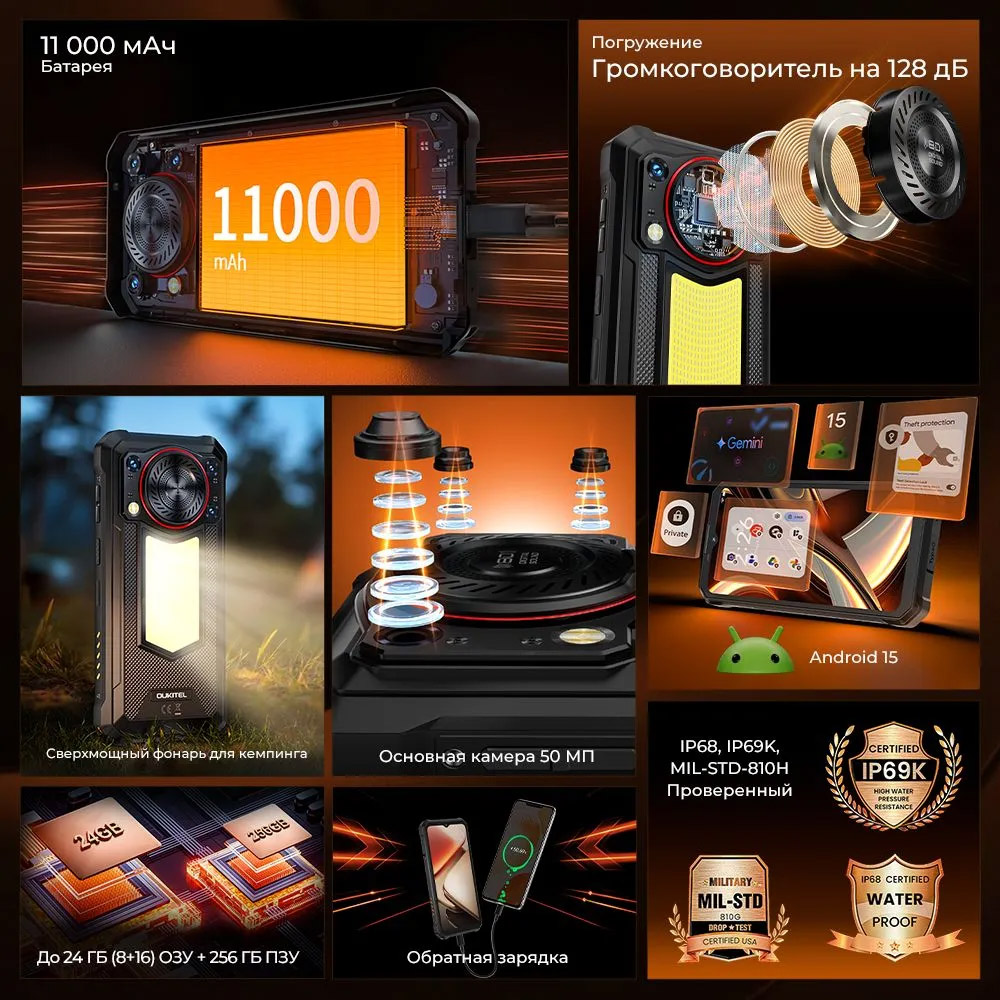 Oukitel WP53 Pro – противоударный смартфон с супер громким динамиком 128 дБ, кемпинговым фонарем и батареей 11000 мАч